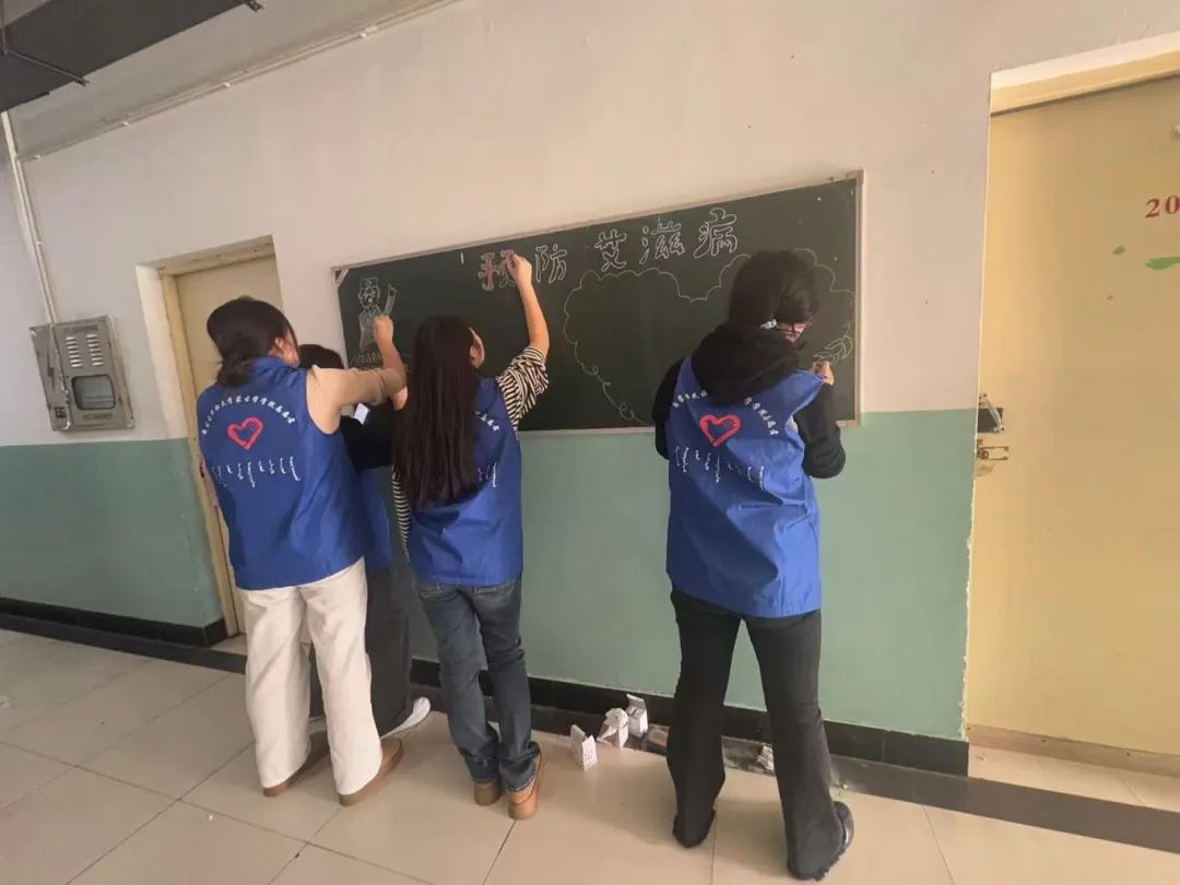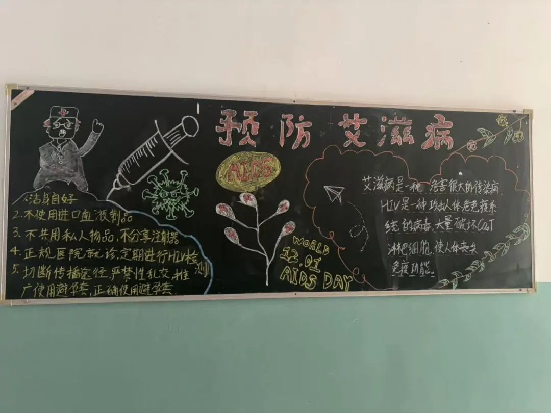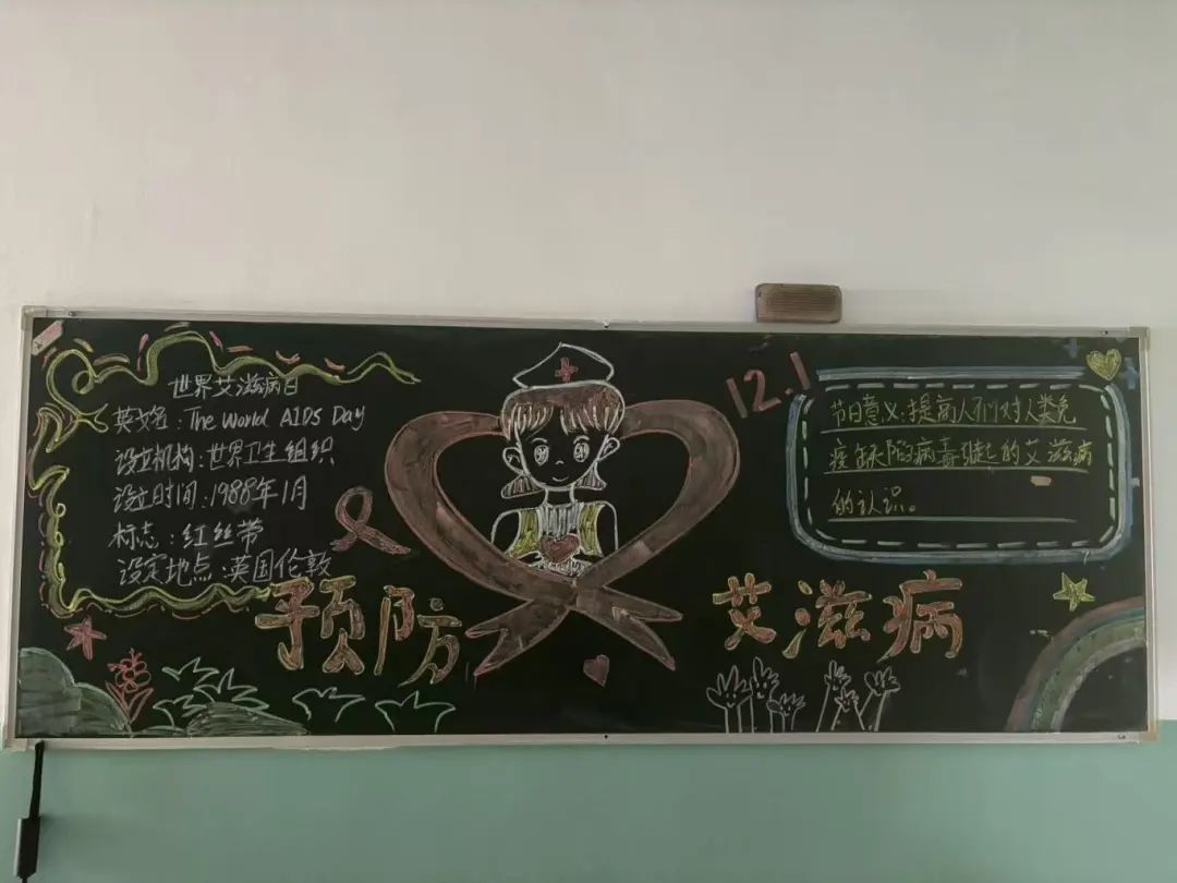 活动中,同学们充分利用公寓生活区黑板,紧密围绕“预防艾滋病”主题,运用简洁明了、引人入胜且贴近生活的绘画风格,向同学们展示了有关艾滋病的基础知识、有效的预防措施以及必须注意的要点。