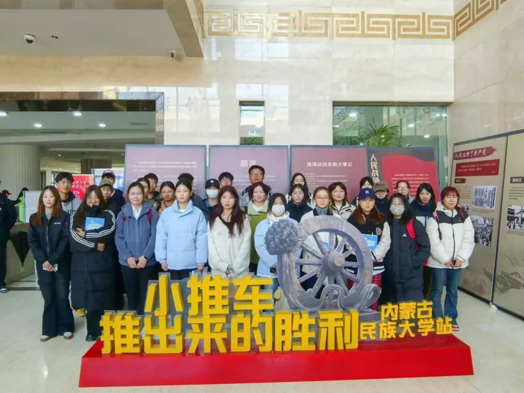10月12日至25日,蒙古学学院先后组织班级前往图书馆“小推车推出来的胜利——淮海战役支前文物图片展”处,召开了爱国主义教育主题班会。