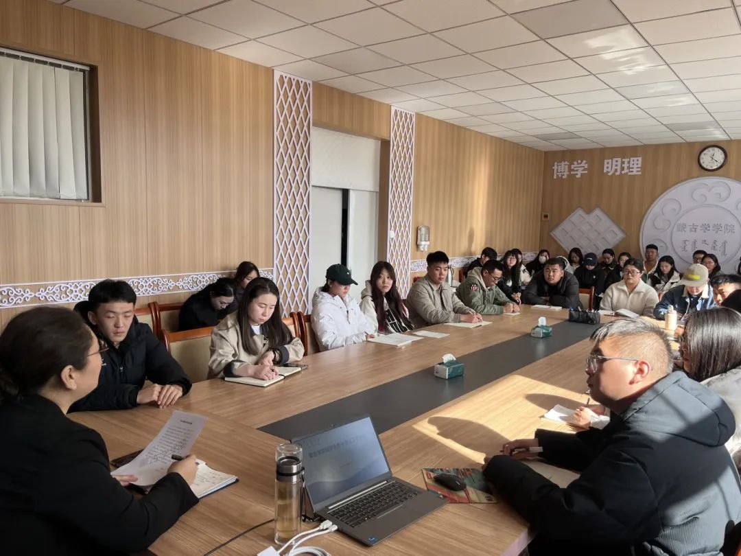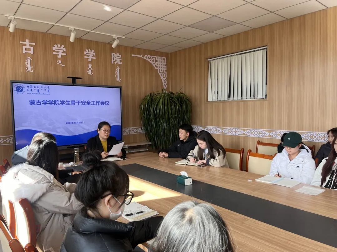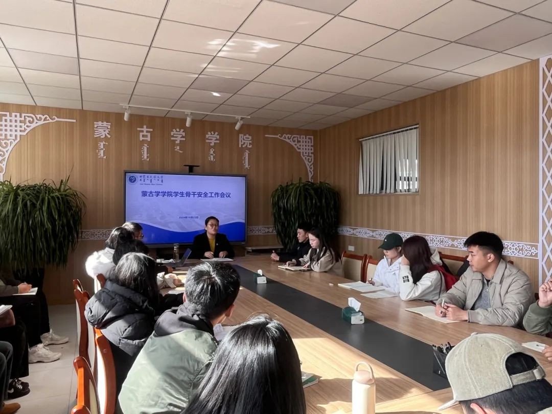 10月22日中午,蒙古学学院在霍林河校区博学楼309会议室组织召开了公寓安全管理工作会议。学院党委副书记温都斯,学工办主任哈申那布其,各学生组织负责人、各班班长、安全委生活委员及宿舍长代表等60余人参加会议。