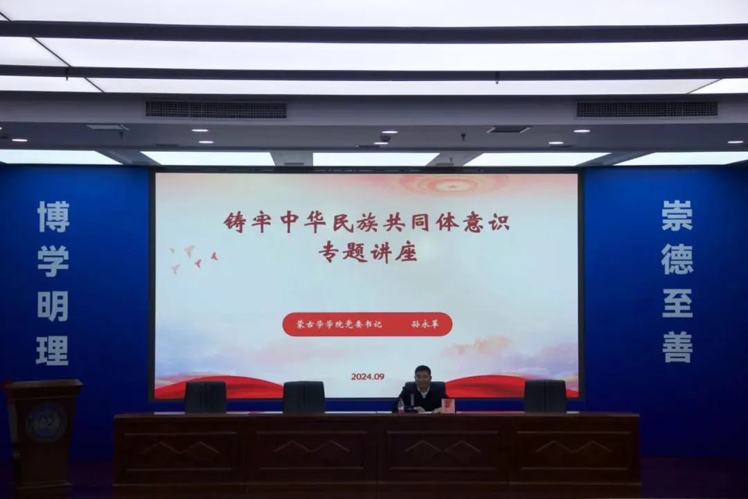 9月20日,蒙古学学院在图书馆大报告厅组织了新生入学教育之“铸牢中华民族共同体意识”专题讲座。本次讲座由党委书记孙永革主持主讲,2024级全体新生参加。