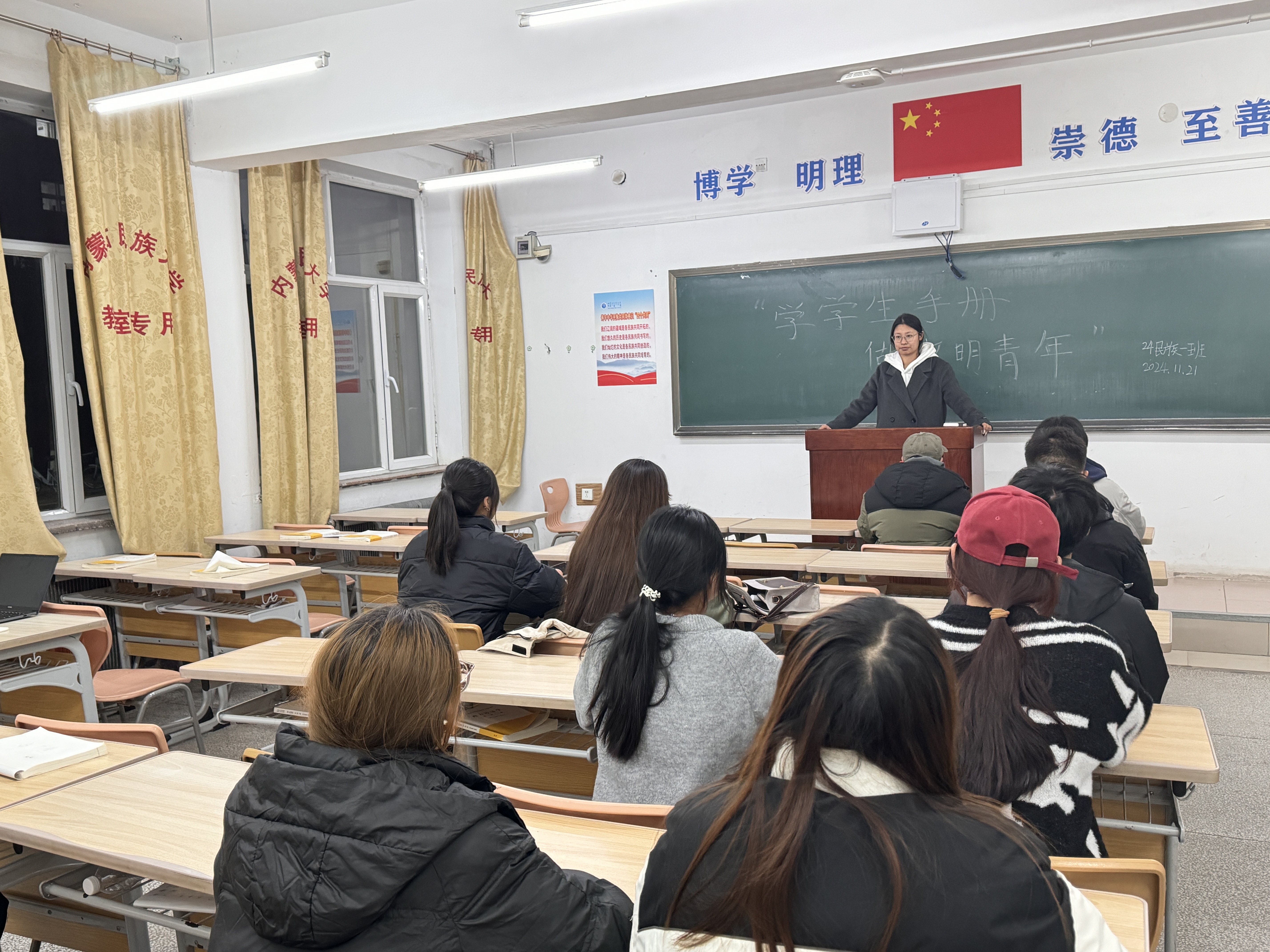 为增强新生对校园文化的了解,进一步明确学校规章制度,提升自我管理能力,蒙古学学院于11月22日至27日在明楼组织开展了“学学生手册 做文明青年”主题学生手册学习实践活动。活动覆盖2024级全体学生。