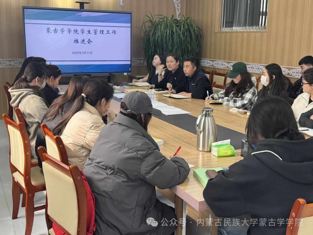 为进一步加强学生管理工作,蒙古学学院于3月11日中午在霍林河校区博学楼309会议室召开了学生管理工作推进会。学院党委副书记温都斯、学工办主任哈申那布其、团总支副书记洪龙泉及各班学生干部等50余人参加会议。会议由学工办主任哈申那布其主持。