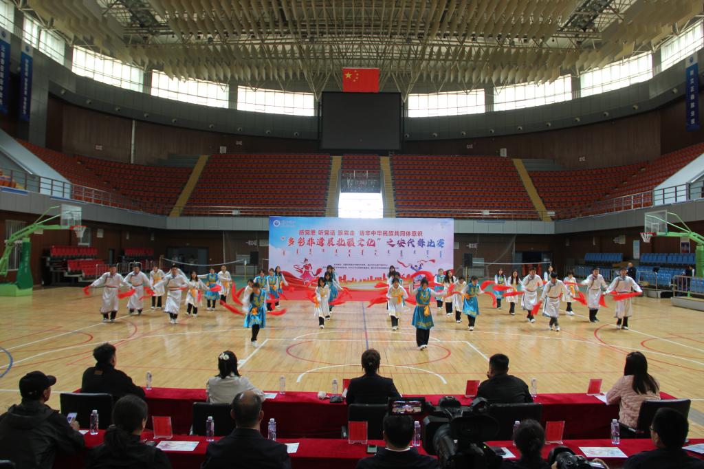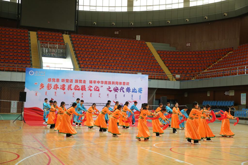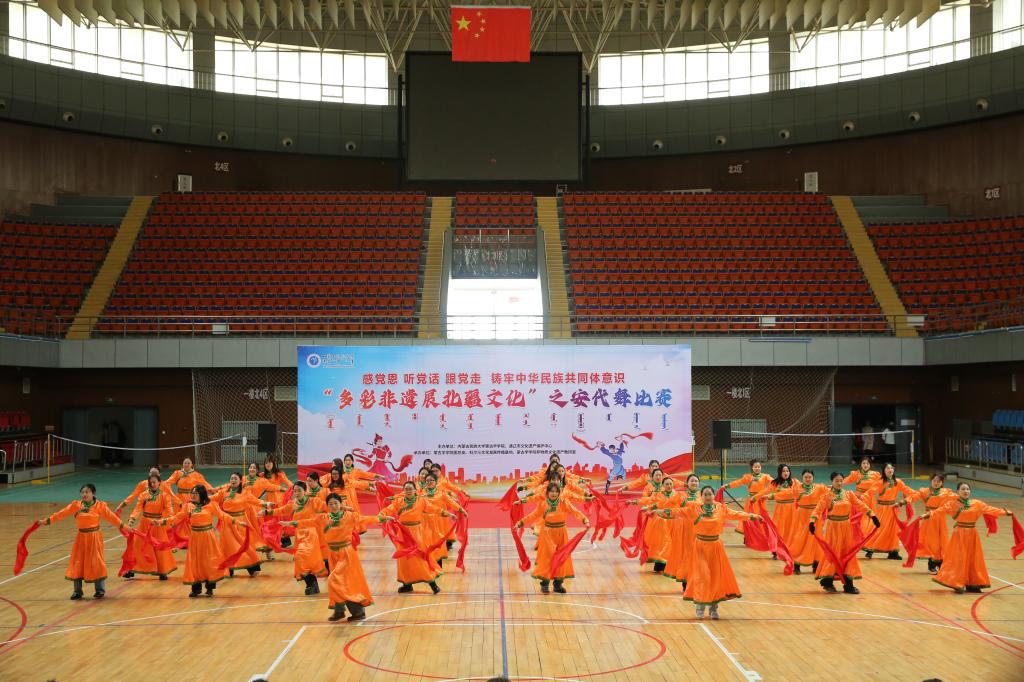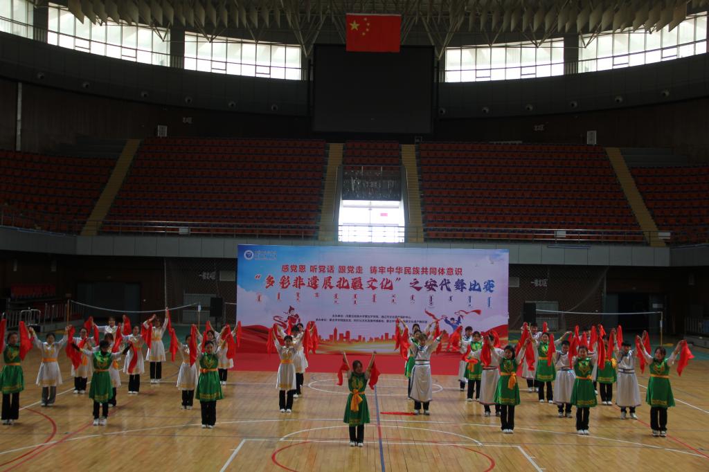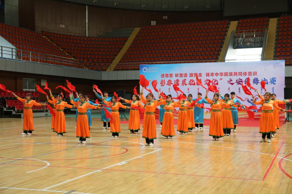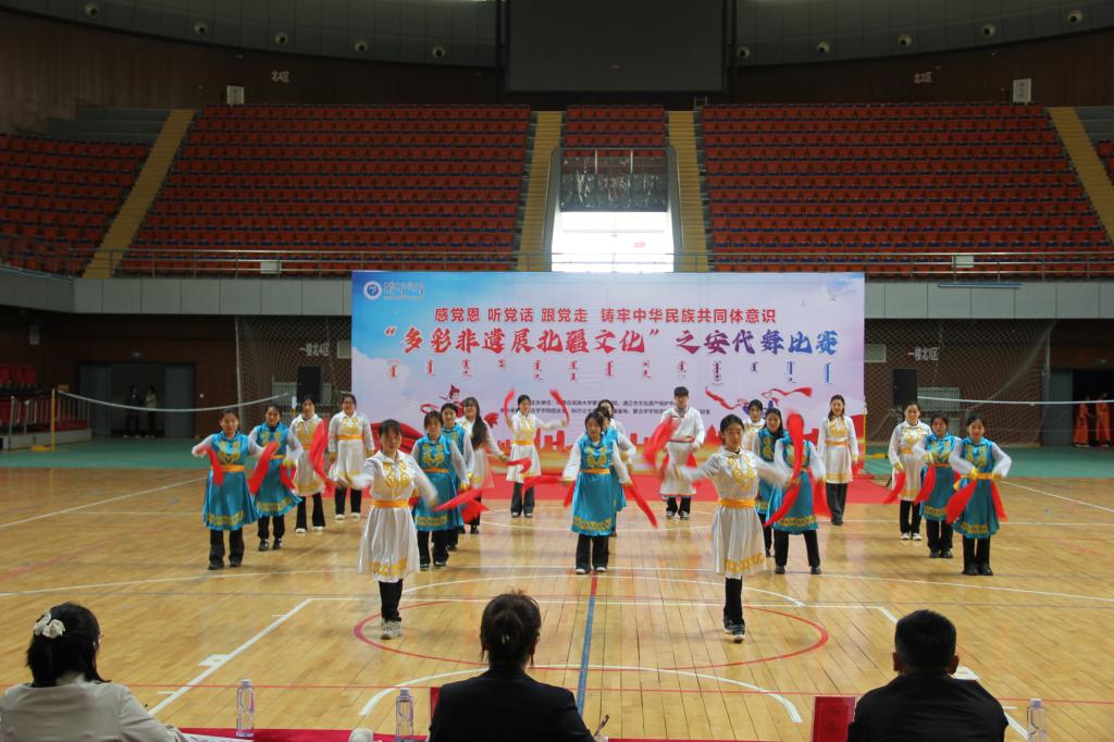 4月27日,蒙古学学院“感党恩听党话跟党走 铸牢中华民族共同体意识‘多彩非遗展北疆文化’之安代舞比赛”在奥体篮球馆举行,比赛由蒙古学学院、通辽市文化遗产保护中心主办,蒙古学学院团总支、科尔沁文化发展传播基地、非物质文化遗产研究中心、蒙古学学院非物质文化遗产教研室承办。蒙古学学院党委书记孙永革、通辽市文化遗产保护中心主任徐书彦、法学院党委书记清河、文学与新闻传播学院党委副书记包宝柱、蒙古学学院党委副书记温都斯、副院长乌吉斯古冷莅临本次比赛。由内蒙古民族大学体育学院王乐、通辽市乌兰牧骑杨凯、内蒙古民族大学党委统战部阿拉腾岱日、通辽市文化遗产保护中心圆圆、吴其力木格担任本次比赛评委。学院全体师生共400余人参加。旨在通过非遗文化的传承和展示,弘扬民族团结精神,进一步铸牢中华民族共同体意识。