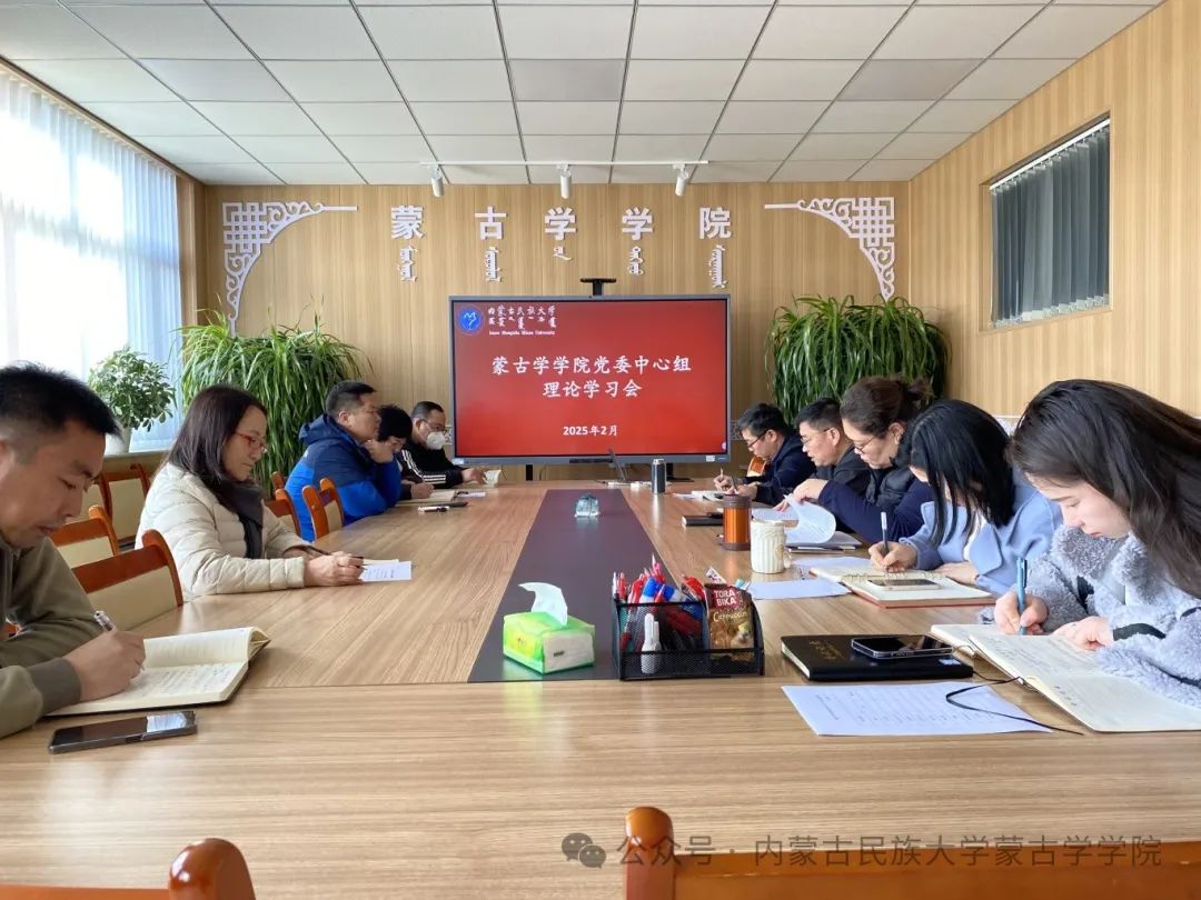 2月16日下午,蒙古学学院在霍林河校区博学楼309会议室召开学院党委理论学习中心组学习会。学院党委理论学习中心组全体成员参加学习会。学习会由学院党委书记孙永革主持。