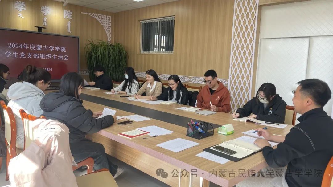 为进一步加强学生党员思想政治教育,提升党支部凝聚力和战斗力,3月18日,蒙古学学院学生党支部在博学楼309会议室召开组织生活会。会议由支部书记洪龙泉主持,支部全体党员参加。